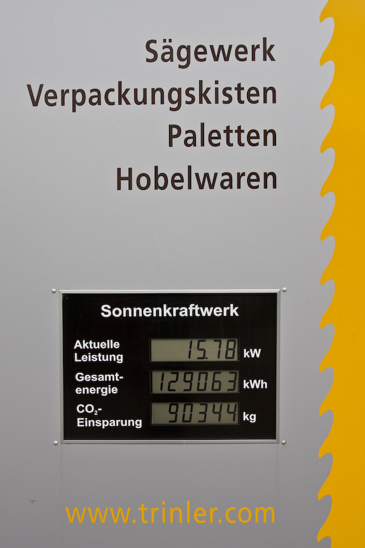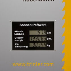 So verfügt unsere Photovoltaikanlage über 42,65 kw/p installierte Leistung und hat in 3 Jahren eine Einsparung von fast 100.000 kg (100 Tonnen) CO² gebracht. Die erzeugte Leistung von rund 135.000 kw/h entspricht dem Jahresverbrauch von ca 15 Einfamilienhaushalten mit 4 Personen.