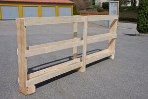 Diese Kiste wird zum Transport von Glas oder Spiegeln benutzt, eignet sich aber auch für Möbelteile, die stehend transportiert werden müssen, da ein liegender Transport die Teile beschädigen oder unbrauchbar machen könnte.