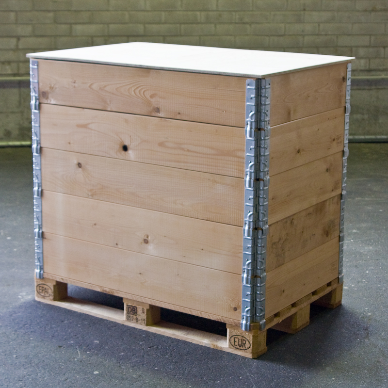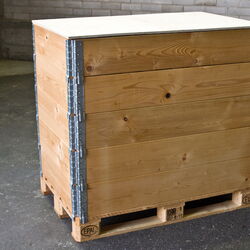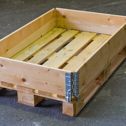 Die Kombination aus Euro-Palette, Rahmen und Deckel bildet eine Kiste mit den Innenmaßen von 1150 x 760 x 200 mm. Zudem können Sie die Rahmen ganz nach Bedarf während des Verpackens nach und nach aufeinander stapeln, bis Sie die maximale Verladungshöhe erreicht haben. Mit einem Deckel schützen Sie die Waren vor Verschmutzung und Diebstahl während des Transports.